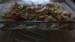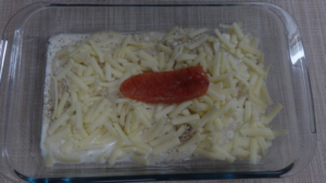 ③チーズ、明太子をのせ、1200Wのトースターで12~15分加熱します。