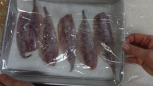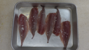 ①あじにしっかり塩をして15分ほどおきます。