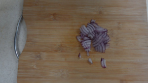 赤玉ねぎは繊維に対して垂直にして薄切りにします。