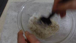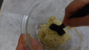 ③ 溶かしたバターを加えてざっくりとまとめます。