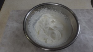 ②別のボウルで、生クリームをゆるく角が立つまで泡立てます。