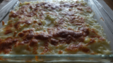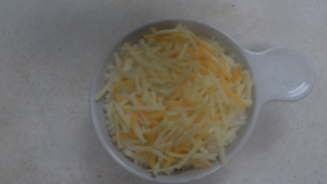 ④③に粉チーズ、バター、シュレッドチーズをかけて、オーブン(230℃)で10分ほど焼きます。