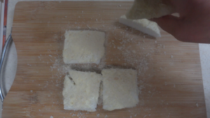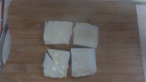 ①好みに切ったはんぺんにマヨネーズをぬります。