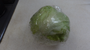 ① レタスは丸ごとラップで包み 電子レンジで しんなりさせます。 600 W で3~4分が目安