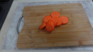 フライパンに並べ 残りの人参とたけのこを食べやすく切って隙間に入れます。