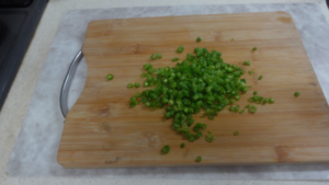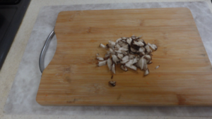 たけのこは 下1/3の硬いところをみじん切りします。 硬いものから順に茹でます(茹でていません)