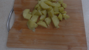 皮をむいて2cm角に切ります。