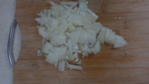 タマネギは小角切りにします。