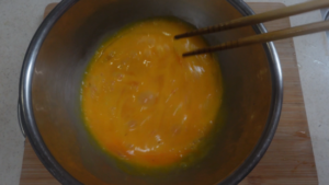 卵は溶いて軽く塩・こしょうします。