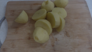 じゃがいもは厚めに切ってコトコト煮込み、牛肉やほかの野菜のうまみをしみ込ませます。