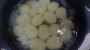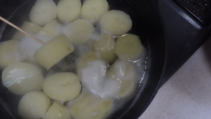たっぷりの水とともに鍋に入れ、中火にかけポコポコと沸くくらいの火加減でゆでます。