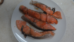 さけにはしっかり下味を。焼いたあとのほうが骨や皮を取り除きやすい。