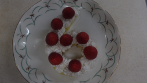 山本ゆりさんのレシピを参考に、市販のロールケーキで数字「6」のナンバーケーキを作りました。