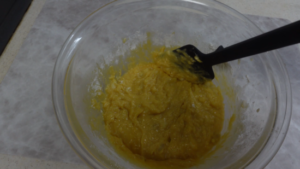 ①ボウルにバター・砂糖を入れて泡立て器でよく混ぜます。